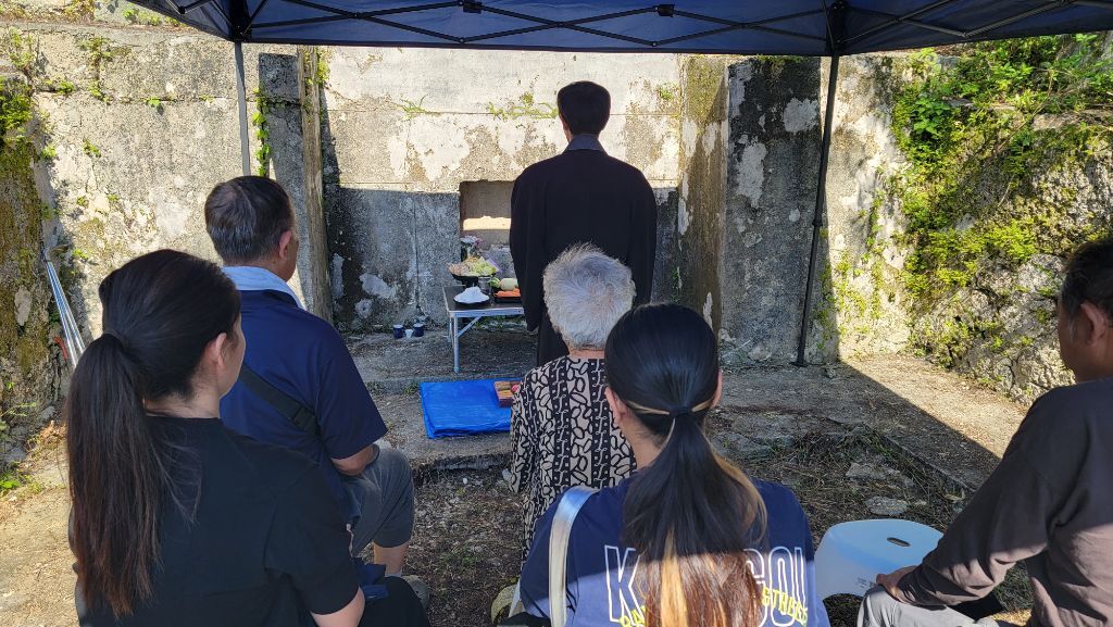 お墓と基地、そして学生の皆さん。三者が隣り合うこの独特な場所で、私たちは改めて、沖縄の歴史と、ご先祖様が守り続けてきた大切な土地の意味を深く感じさせられました。