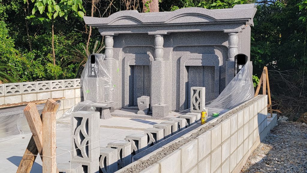 今回のO家之墓造りは、O様自身で基礎工事とブロック塀工事を進め、「手際よくスムーズに作業を進める計画性」と「仕上がりの美しさに妥協しない丁寧さ」が融合した、まさにDIYのお手本でした。ご自身で造り上げた強固な基礎と、美しい直線を描くブロック塀は、瀬底島の青い空と海を背景に、O家の誇り高き境界線として輝いています。
