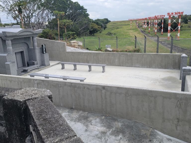 お問い合わせから約1年、C家様のお墓建て替え工事がこのほど無事に完了いたしました。現場は普天間基地に隣接しており、施工にあたっては様々な規制や制約もございましたが、施主様、隣接地主のご協力もあり、細部まで妥協のない仕上がりとなりました。数日後にはいよいよ納骨式が執り行われる予定です。新しくなったお墓が、C家ご親族にとって大切な絆を紡ぐ場所となることを心より願っております。