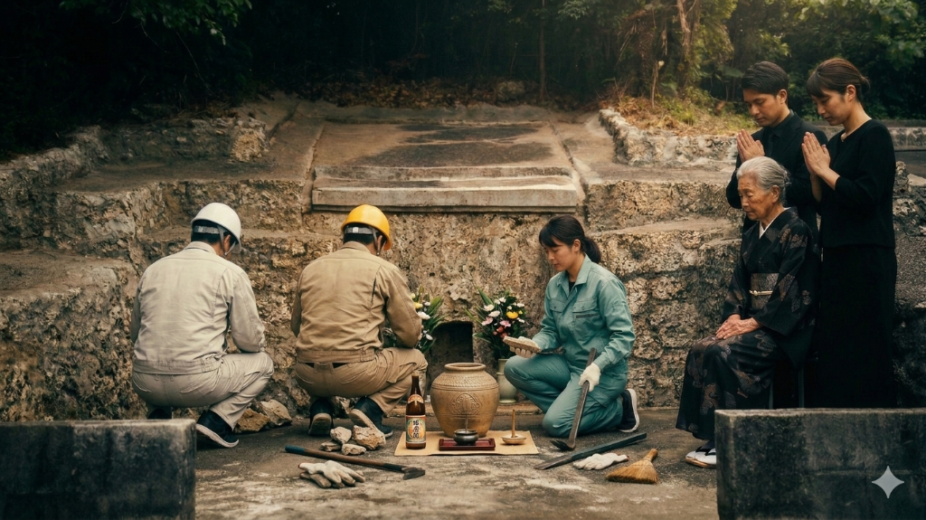 お骨の取り出し・整理: 沖縄特有の洗骨の歴史を持つお骨を丁寧にまとめ、新しい納骨先へ移動できるようサポートします。
