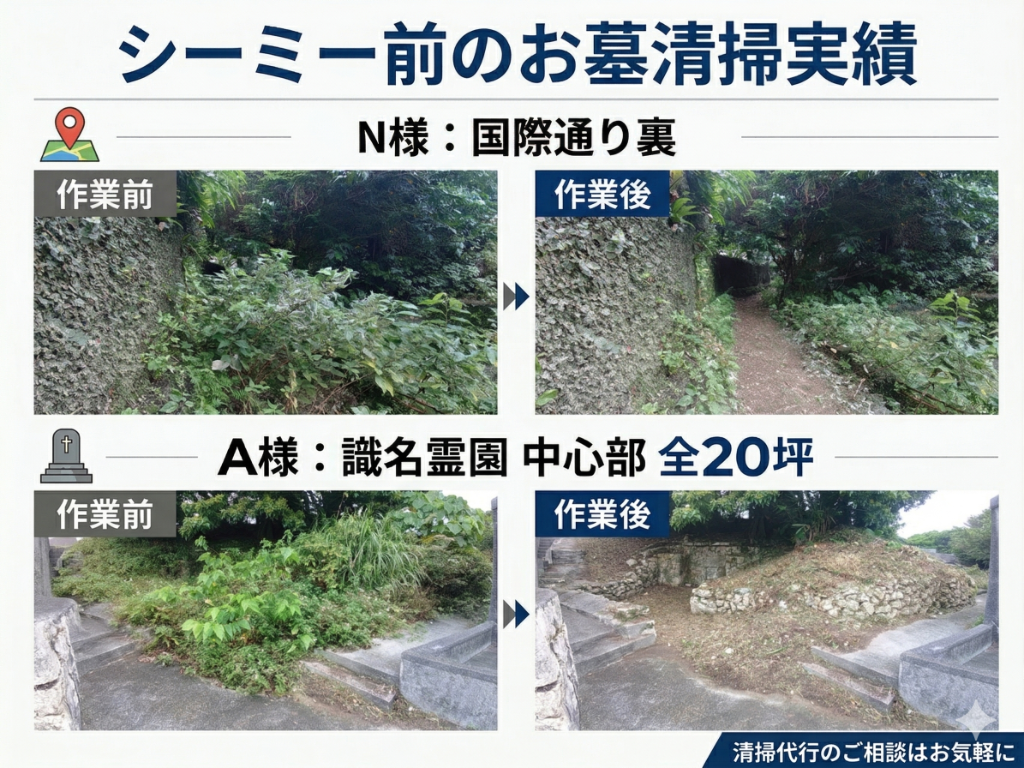 「忙しくてなかなか時間が取れない」「体力的に広い敷地の掃除が厳しい」という方は、ぜひ私ちにお任せください。ご先祖様も、そしてお参りに来る皆様も、清々しい気持ちでシーミーを迎えられるようサポートいたします。