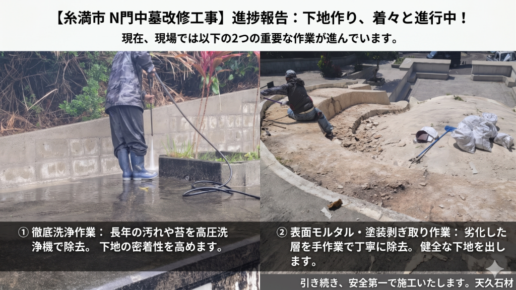 糸満市N門中墓、改修工事が本格始動!「下地」こそが美しさの決め手